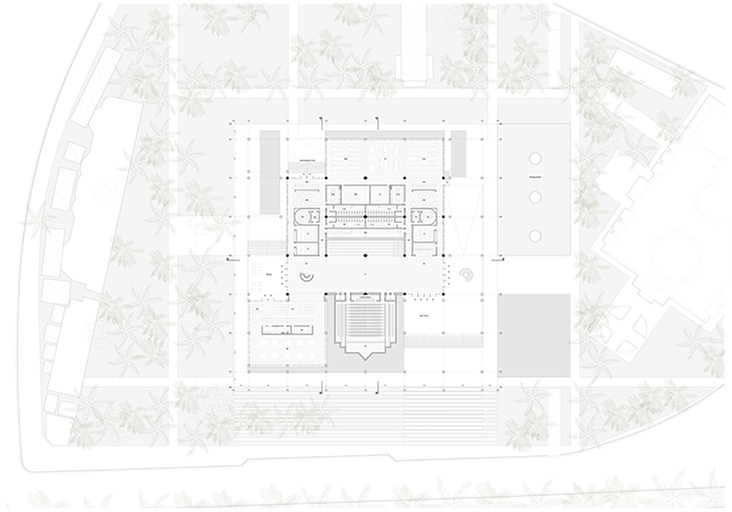 The park and the library are conceived as a continuum. In one direction, nature extends under the new roof of the library in a system of shaded spaces full of vegetation and water. These spaces create a covered piazza in the center of park. In the other direction, the program of the library extends to the outside. Reading terraces, the extension of the café, event spaces and meeting places for the employees and for visitors, all expand the life of the library into the park. The park, the library, interior and exterior, are all integrated.